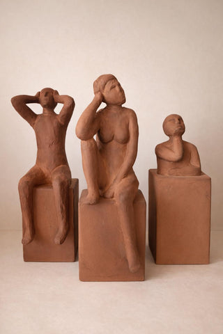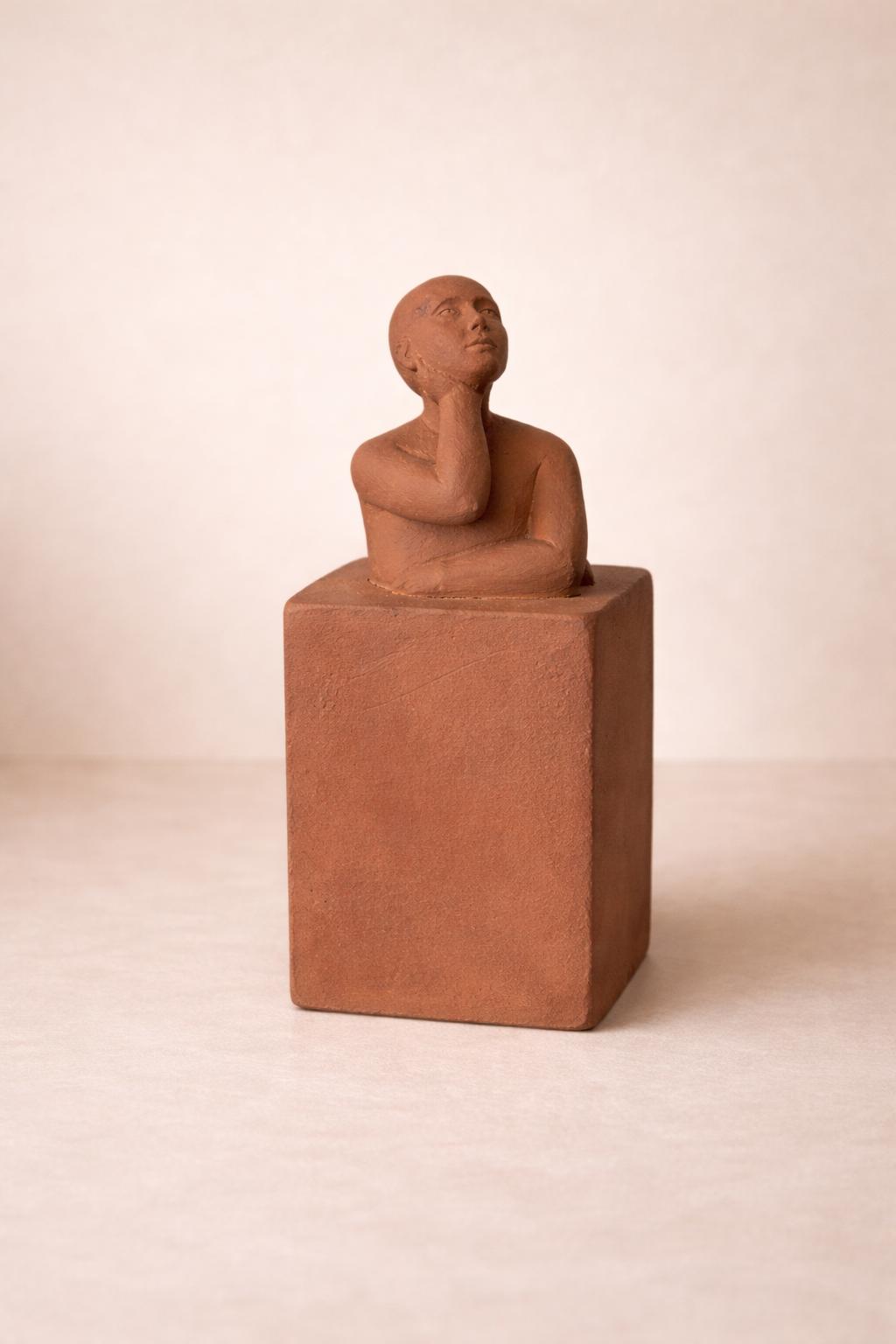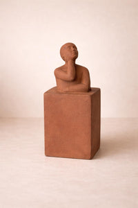 Escultura decorativa en cerámica terracota con forma humana.